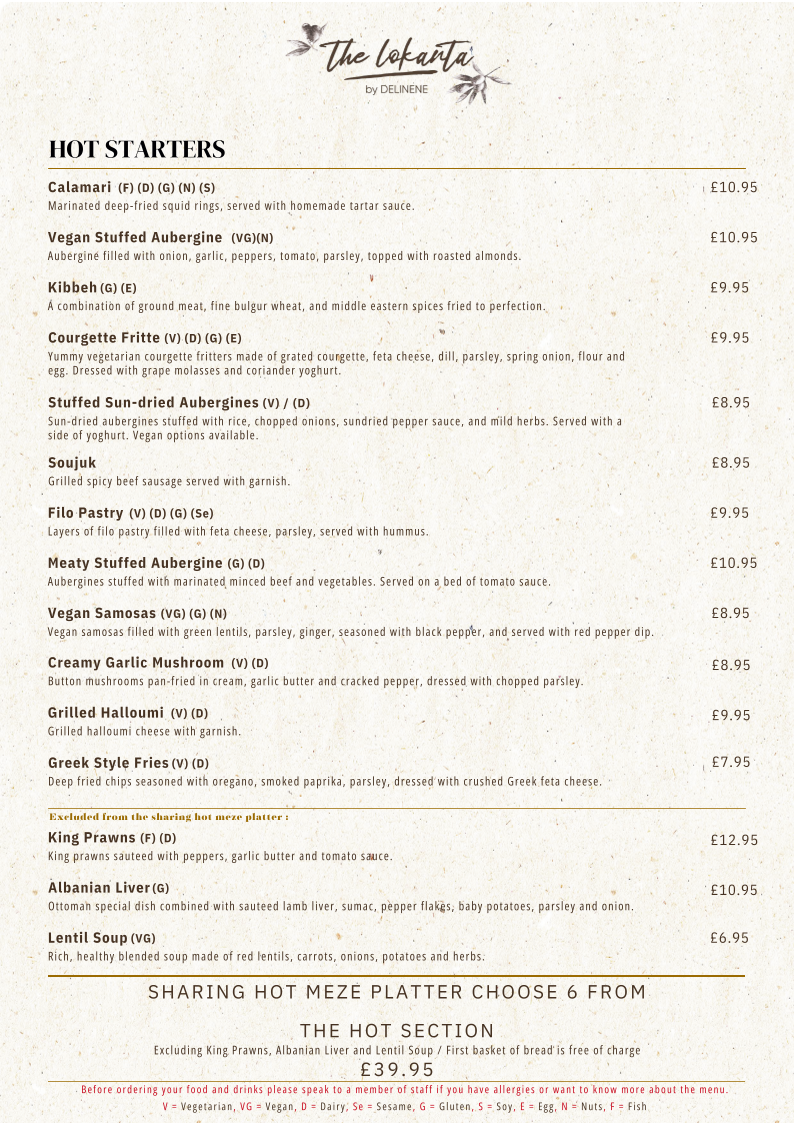 What sets The Lokanta Menu apart from nearby Mediterranean eateries is its balance of rustic authenticity with a polished, modern twist. The attentive service and inviting décor add to the overall charm, making it an excellent option for both casual lunches and intimate dinners.